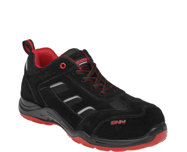 BENNON® REBEL - Moderní bezpečnostní polobotka se vzdušným kombinovaným svrškem z veluru a nylonu na nástřikové podešvi PU/PU, vhodná pro práci v suchém venkovním i vnitřním prostředí.