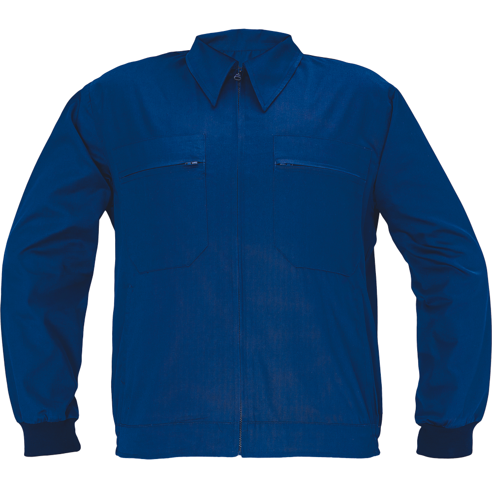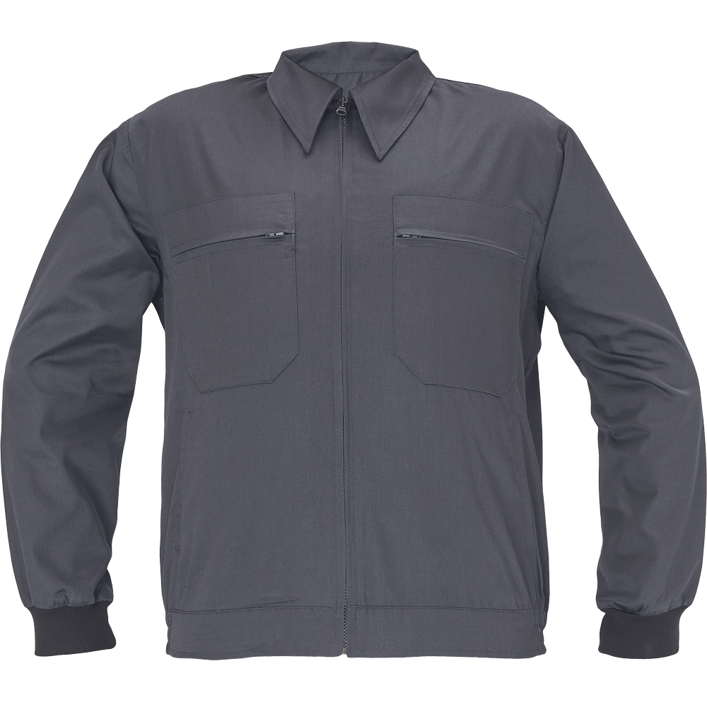 Pánská pracovní bunda; 2 náprsní kapsy na zip; 2 postranní kapsy; elastické manžety a spodní lem.
