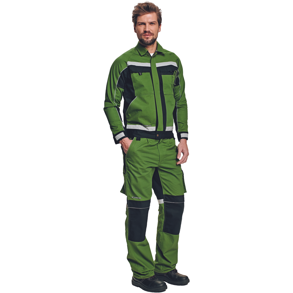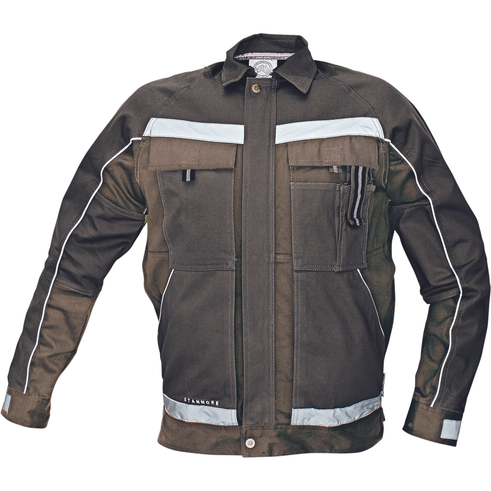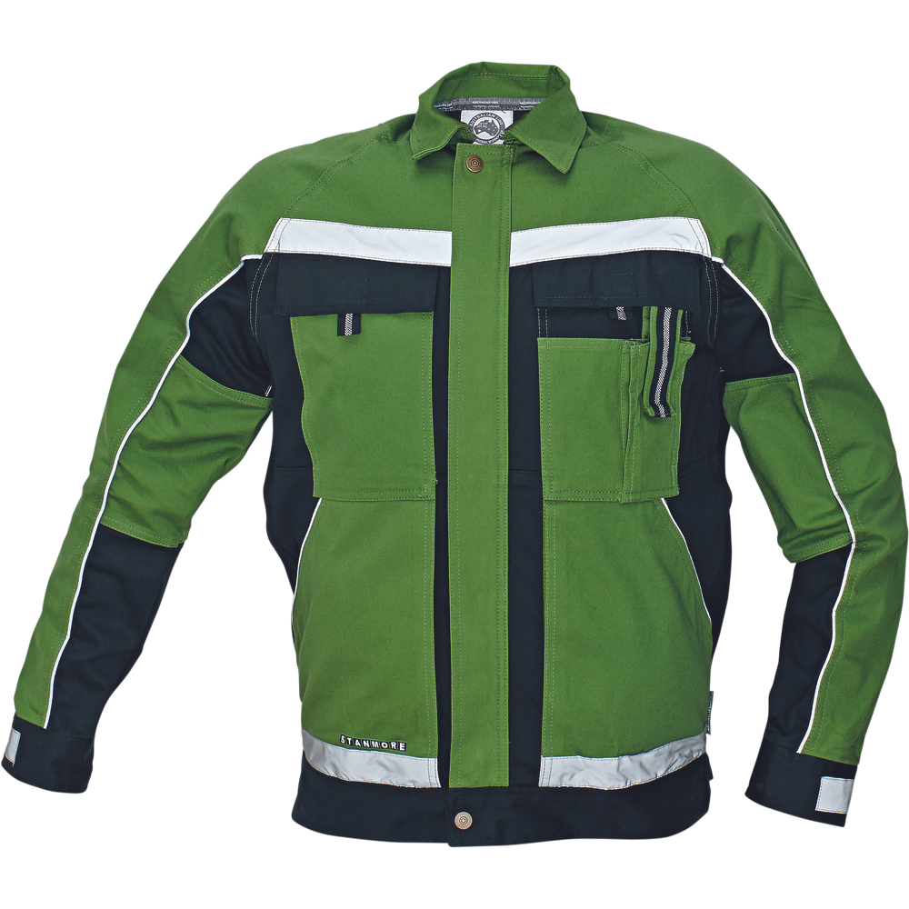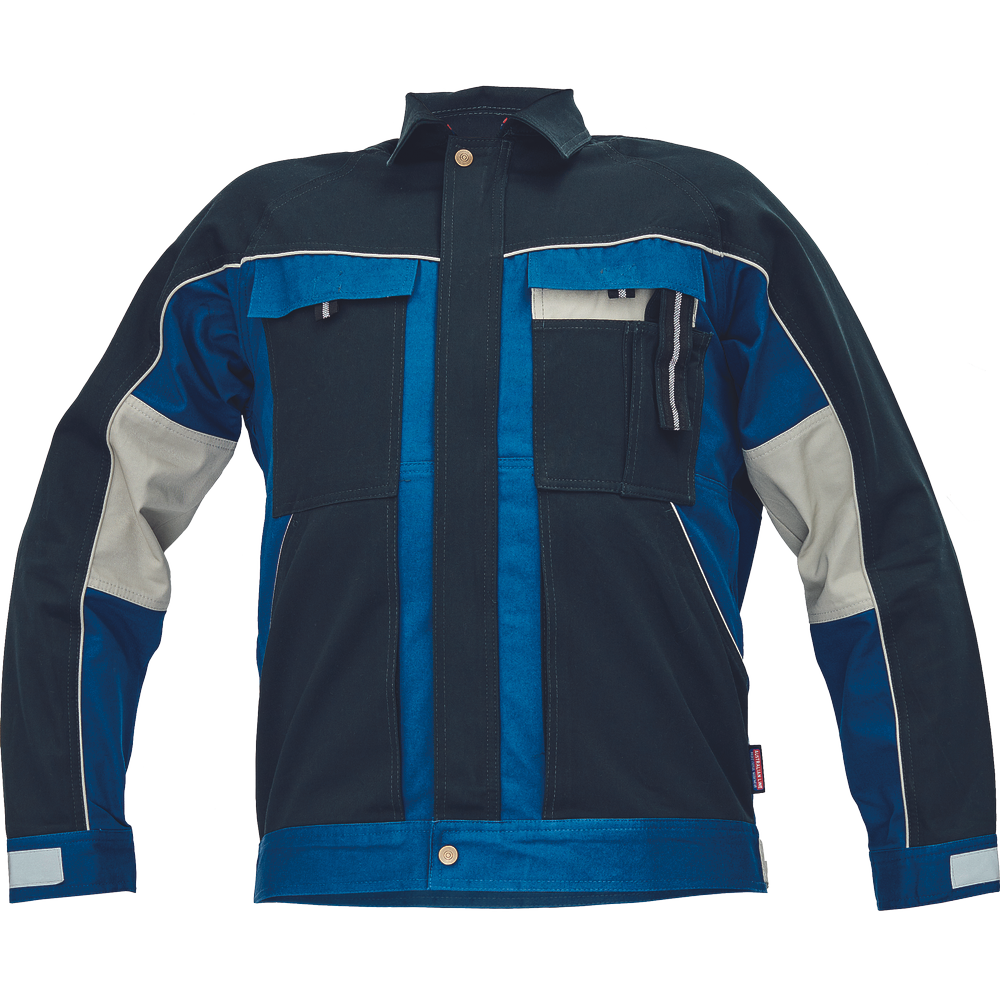 pracovní bunda pohodlného střihu a vysoké odolnosti, reflexní doplňky, nastavitelné manžety rukávů na druky • polohovací spodní lem na druky