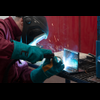 Celokožené rukavice z hovězí štípenky v délce 35 cm, s bavlněnou podšívkou, zesílením v dlani a krytými švy.