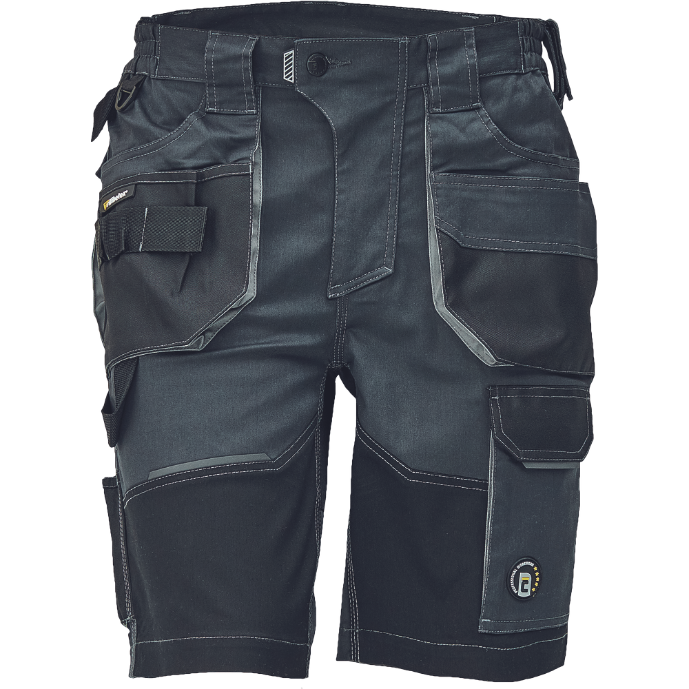 Pracovní šortky, elastický inovativní materiál TRIFIBETEX, ergonomický střih, snížený pružný pas, odolné trojité prošití nohavic a sedu, zesílená kaps