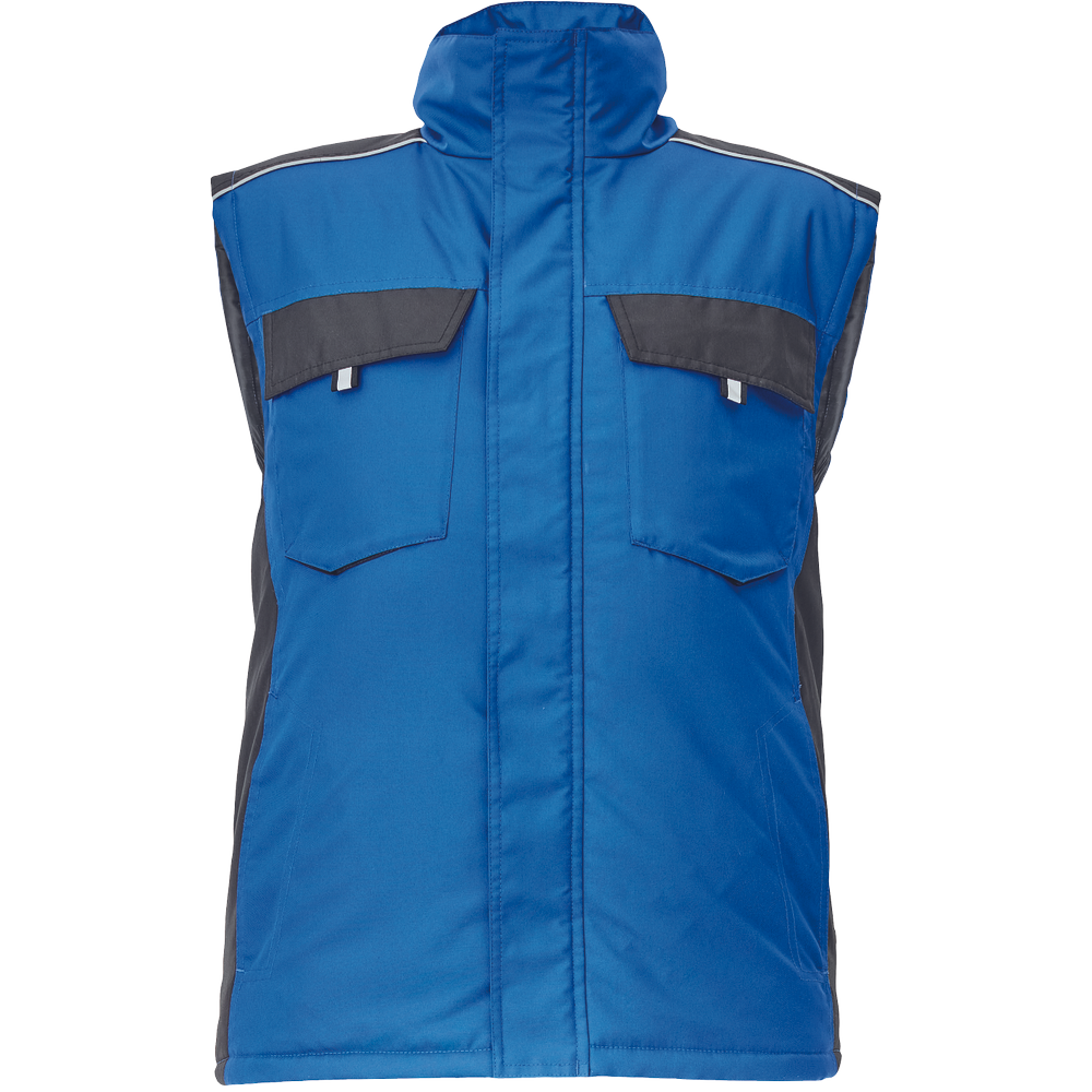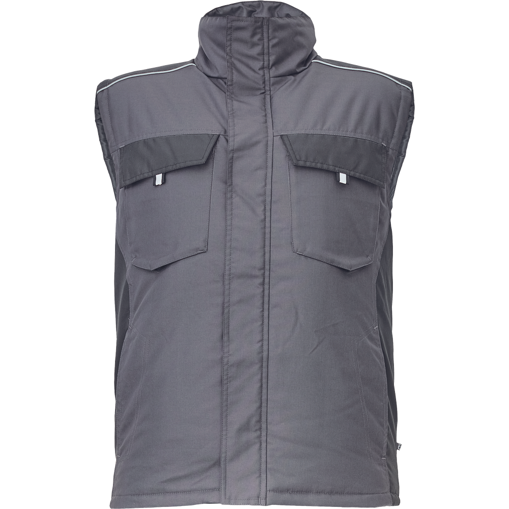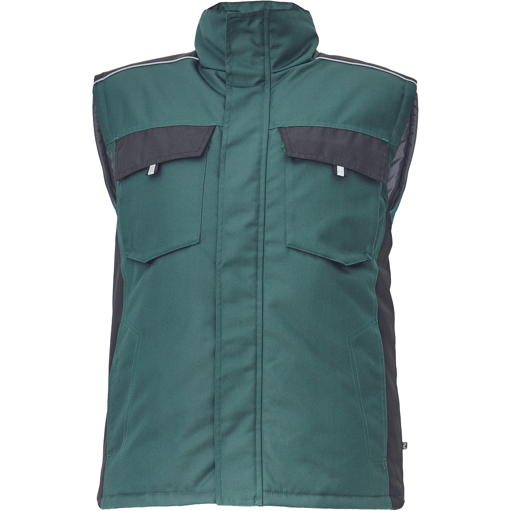 Pánská zimní vesta; zapínání na zip kryté légou na suchý zip; 2 boční kapsy, 2 náprsní kapsy na suchý zip.