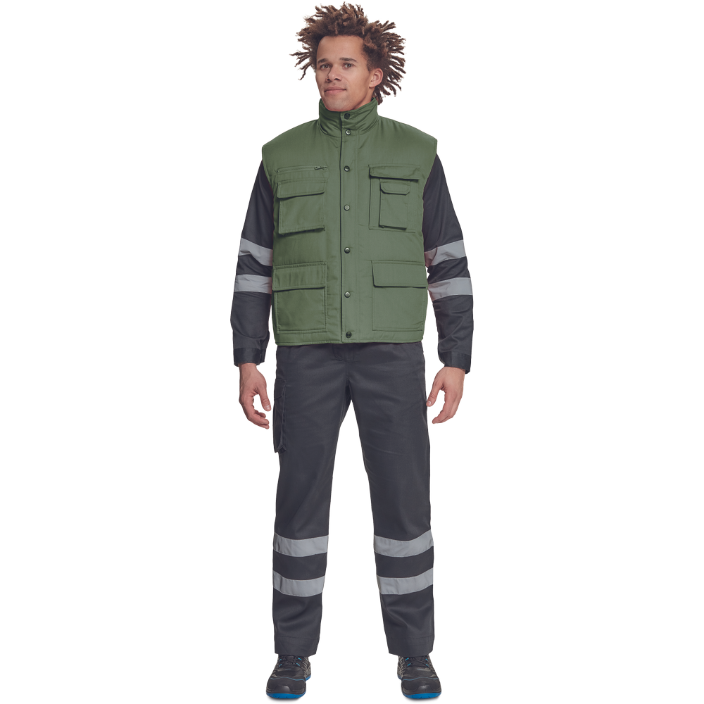 Je vyrobená z materiálů polyester-bavlna s praktickými našitými kapsami ve větším množství. Pracovní vesta je vybavena praktickou kapsou pro mobilní telefon.