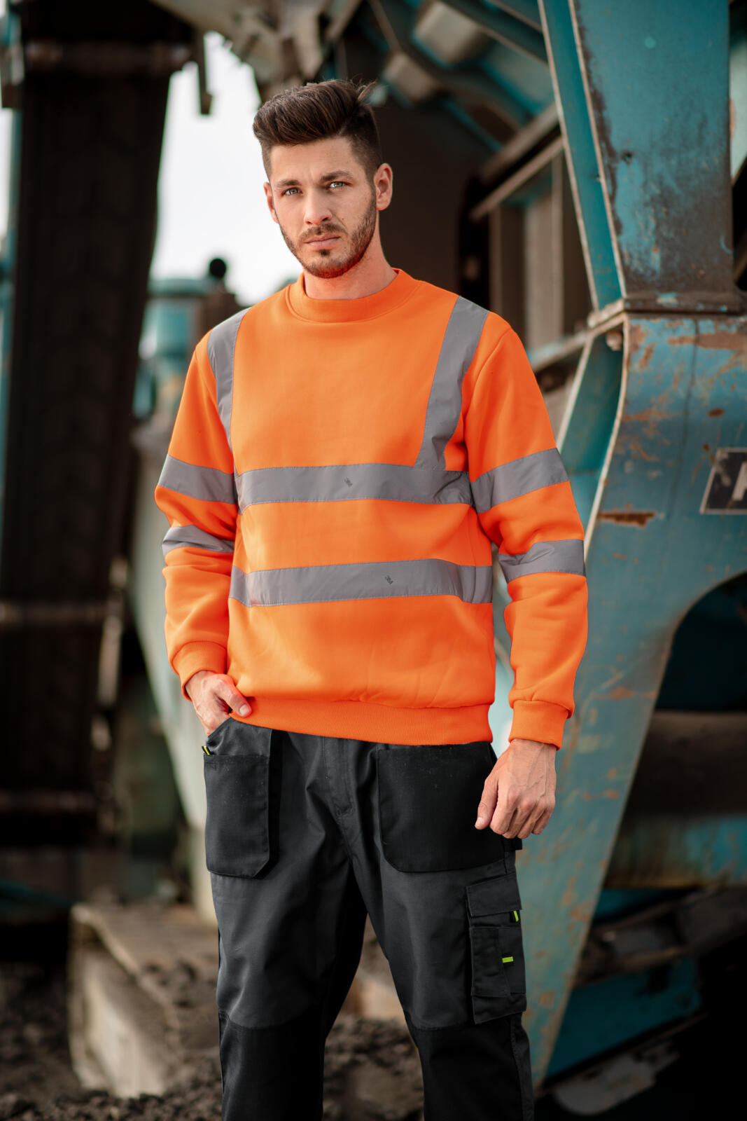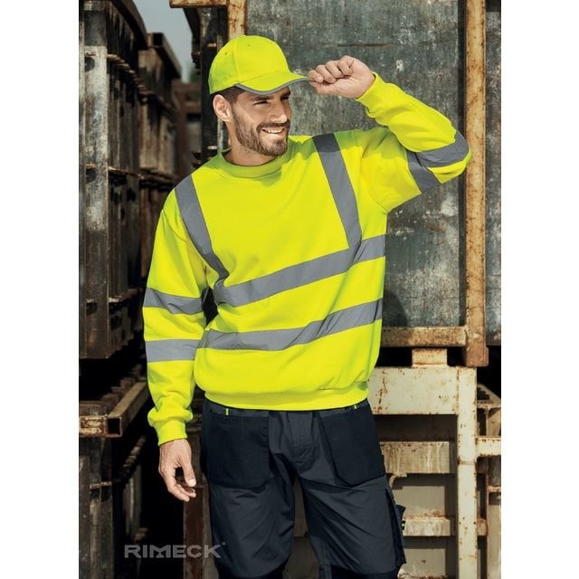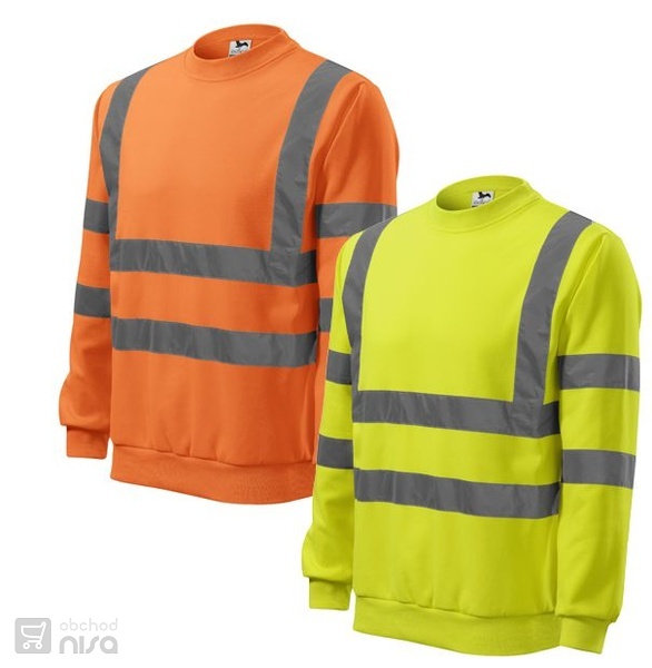 Mikina z fluorescenčního materiálu s hlavicovým rukávem. Použity certifikované retroreflexní pruhy výrobce 3M.