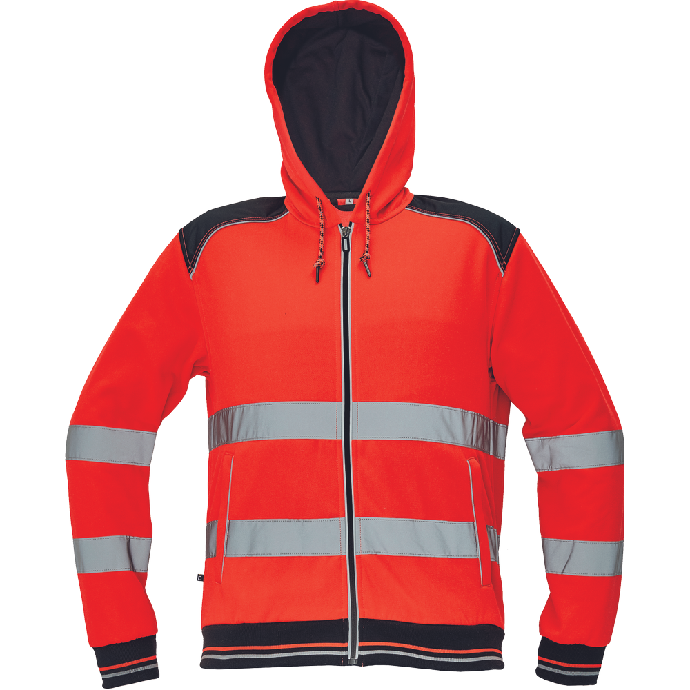 Pánská celopropínací mikina s dvojitou kapucí v HI-VIS provedení. Pružné náplety na rukávech a spodním obvodu. Oblečení je vhodné pro práci ve většině běžných provozů.