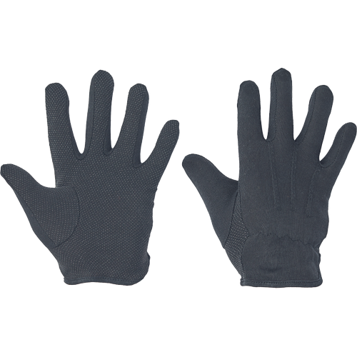 Černý bavl. úplet, bez manž., dlaň s PVC terčíky. ZDE naleznete tabulku velikostí.
