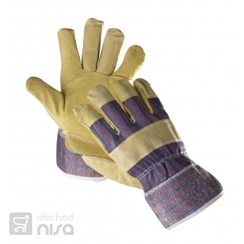 Pracovní rukavice Tern jsou kombinované rukavice ze žluté hovězí štípenky a pruhované bavlněné tkaniny v ekonomickém provedení