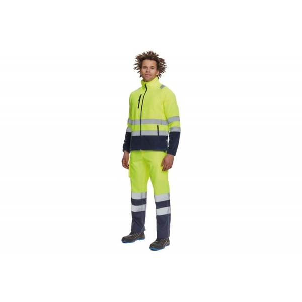 pánská Hi-Vis fleecová bunda s retroreflexními pruhy přes ramena, v bocích a na rukávech, zapínání na zip, 1 náprsní kapsa a 2 postranní kapsy na zip, elastické lemy rukávů a boků