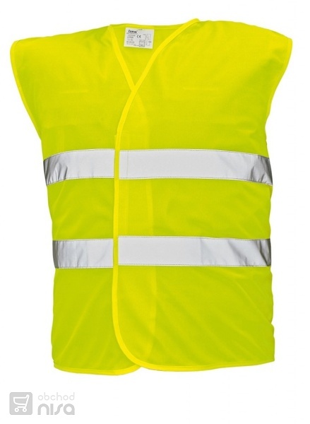 Signální vesta s reflexními pásky, k nošení přes svrchní oděv. Reflexní vesty jsou vyrobeny z materiálu polyester.