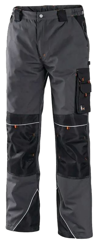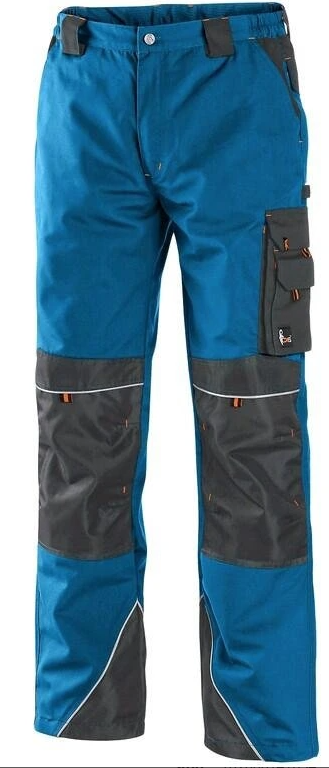Pánské kalhoty do pasu, zesílená kolena s možností vložení kolenních výztuh, pevný pas s poutky na opasek.