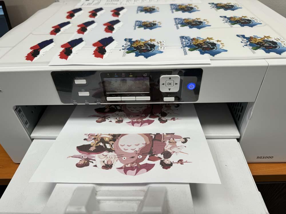 Tisk na transferový papír: Obraz je natištěn na speciální sublimační papír pomocí inkoustové tiskárny s sublimačními inkousty.