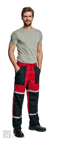 Pracovní montérkové kalhoty TAYRA v červeno-černé barvě. Velkou předností pracovních oděvů Tayra je olejivzdorná a voděodolná impregnace, která zaručuje funkčnost, jsou skvělé například pro zaměstnance autoservisů. Velkou výhodou jsou i reflexní