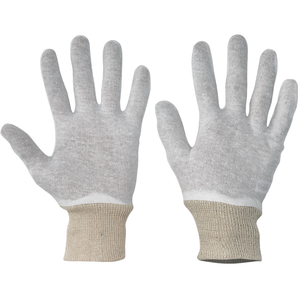 Rukavice šité z jemného běleného bavlněného úpletu, s pružnou manžetou, Rukavice prodáváme pouze po celém balení. V balení 12 ks.FOOD CONTACT Produkt lze objednat pouze po 12 kusech.