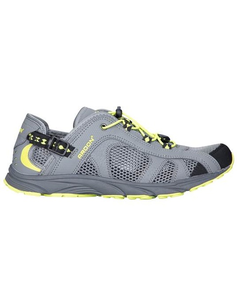 Trekový sandál kombinuje několik materiálů – především textilie a polyuretan. Svršek obuvi pokrývá síťovina, která nechává vnitřek boty volně větrat a odvádí pot od pokožky nohy. Plná uzavřená špička předchází zranění nebo vniknutí nečistot do boty. Podrážka je zdrsněná výrazným vzorem, brání sklouznutí nebo špatnému nášlapu.