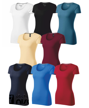 Skvěle padnoucí dámské tričko s elastenem doplněné o jemné detaily. Vynikající kvalita materiálu a šití.