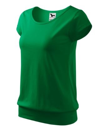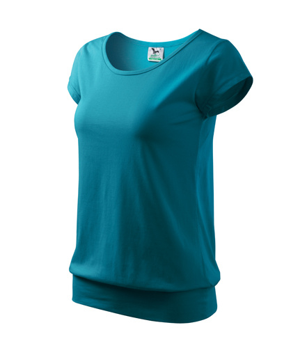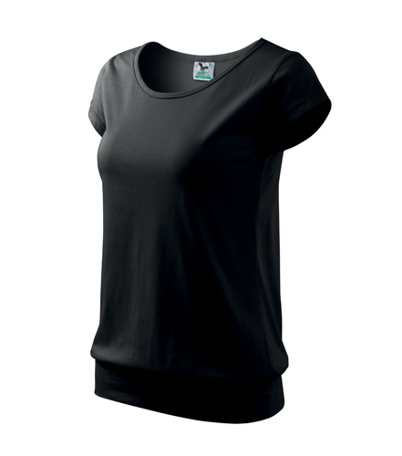 Trendové dámské triko s velmi krátkým rukávem, volnějšího střihu, v dolním kraji všité do širokého lemu.