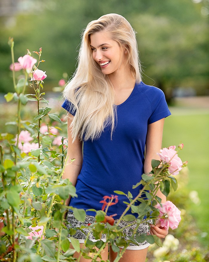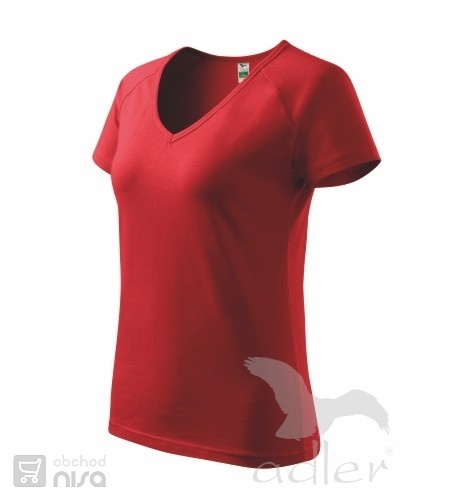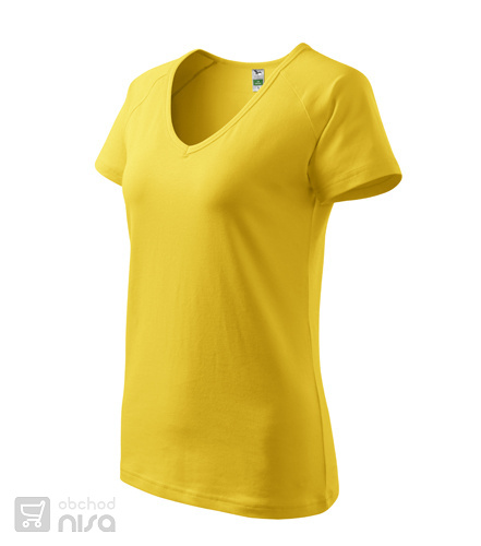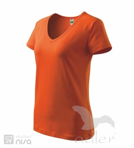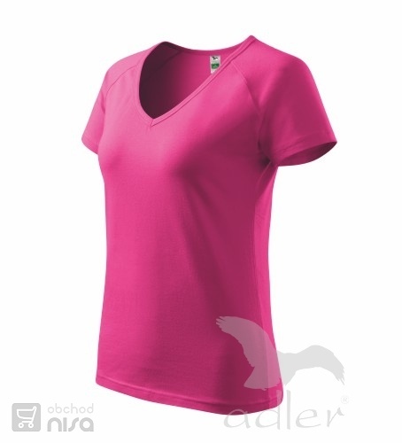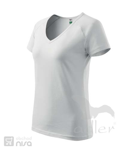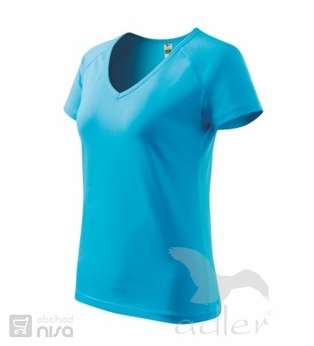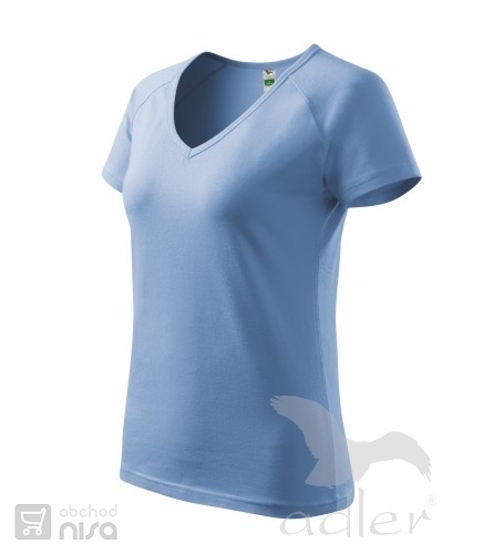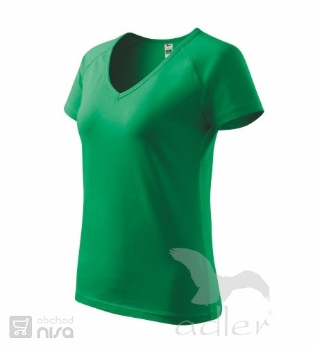 výstřih ve tvaru V, průkrčník lemován vrchovým materiálem, krátké raglánové rukávy