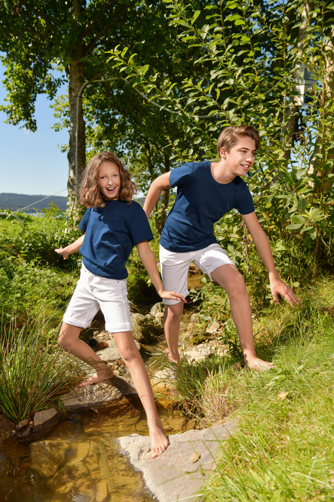 Dětské tričko střední gramáže s bočními švy. Úzký průkrčník s přídavkem 5 % elastanu.