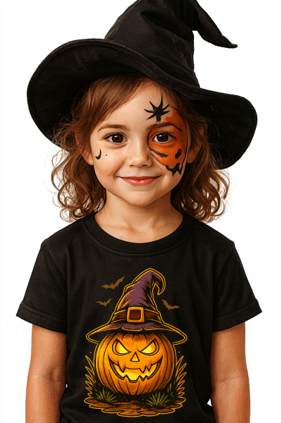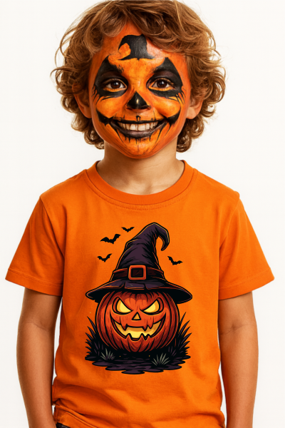 Dětské tričko s  halloweenským motivem dýně , vyrobené ze 100% bavlny pro maximální pohodlí.