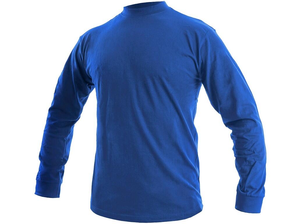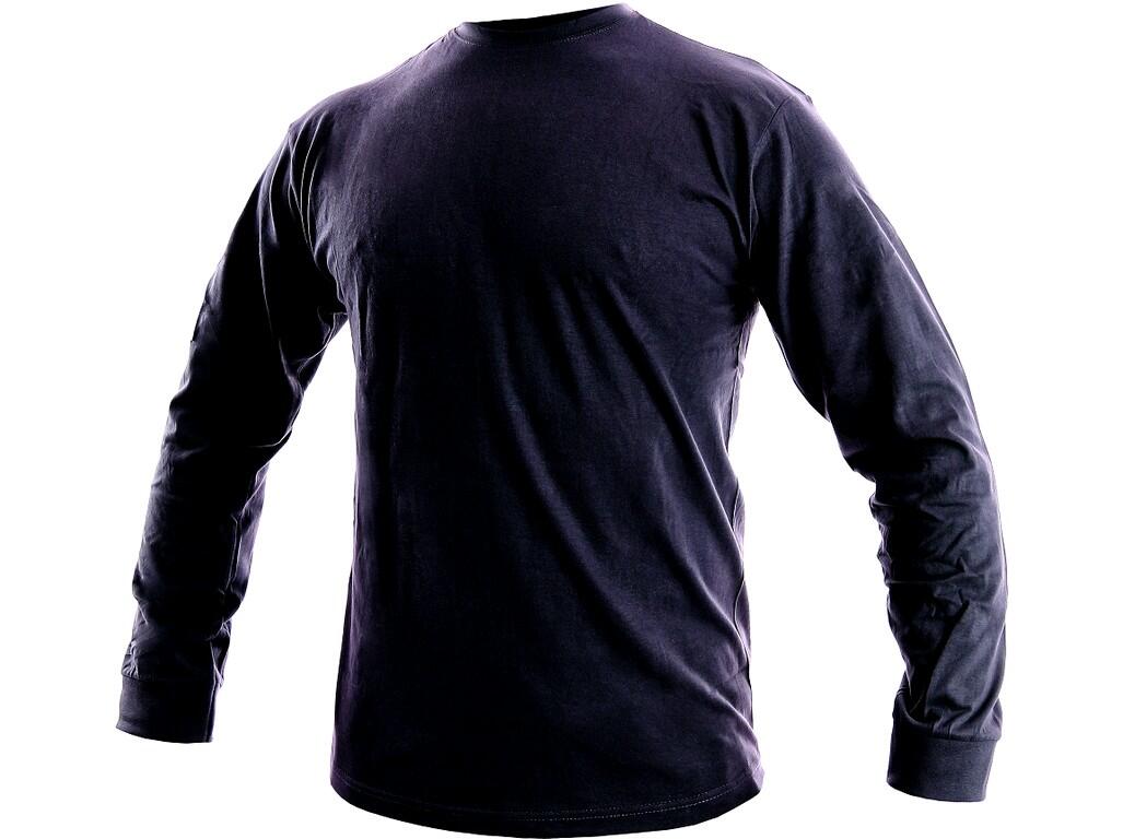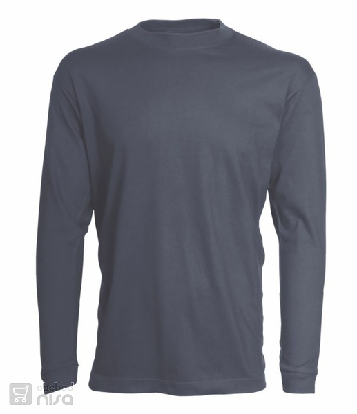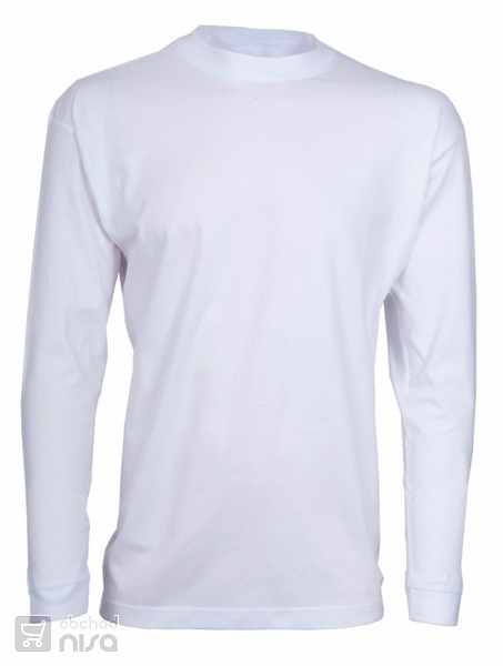 Tričko s dlouhým rukávem, kulatý průkrčník, zdvojené švy, zpevňující ramenní páska, trup je po stranách beze švů.