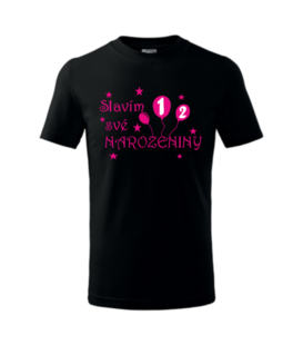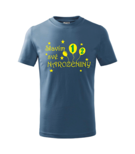 Kvalitní tričko s potiskem SLAVÍM SVÉ NAROZENINY. Do poznámky objednávky nám uveďte požadovaný věk.