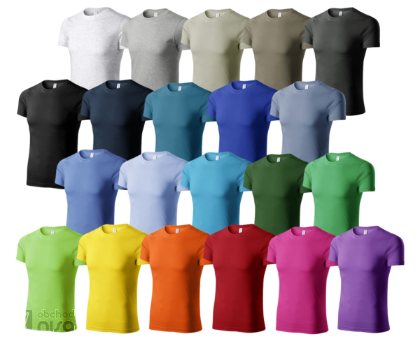 • Barvy: bílá, světle šedý melír, tmavě šedý melír, světlá khaki, army, tmavá břidlice, černá, námořní modrá, petrolejová, královská modrá, denim, azurově modrá, nebesky modrá, tyrkysová, lahvově zelená, středně zelená, apple green, žlutá, oranžová, červená, purpurová a fialová