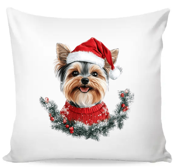 Povlak na polštář vánoční Yorkshirský teriér