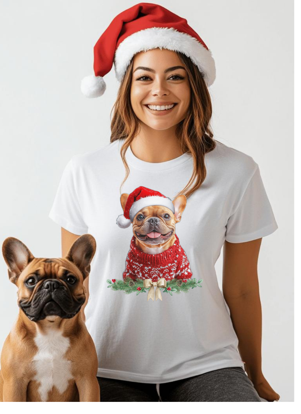 Vánoční tričko s Francouzským buldočkem dámské