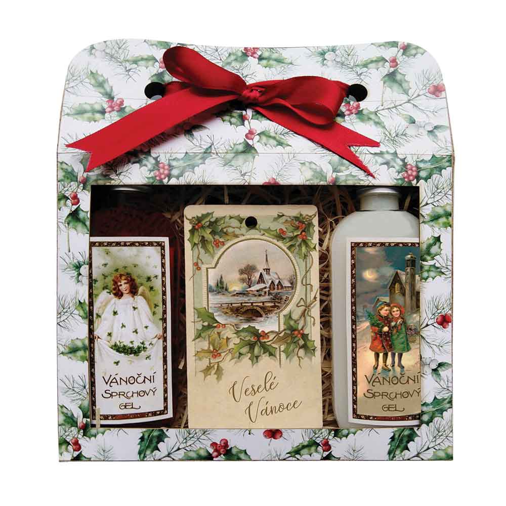 Dárkové balení vánoční kosmetiky s extrakty s vůní jablka a skořice. Originální dárková sada kosmetiky složená ze dvou sprchových gelů 100 ml a vonné karty. Skvělý dárek k Vánocům pro ženy, kolegyně nebo kamarádky.