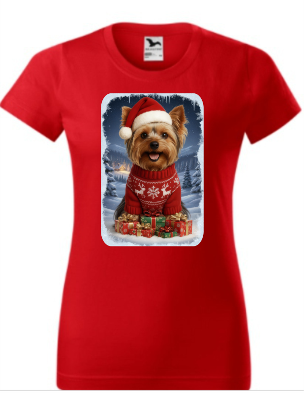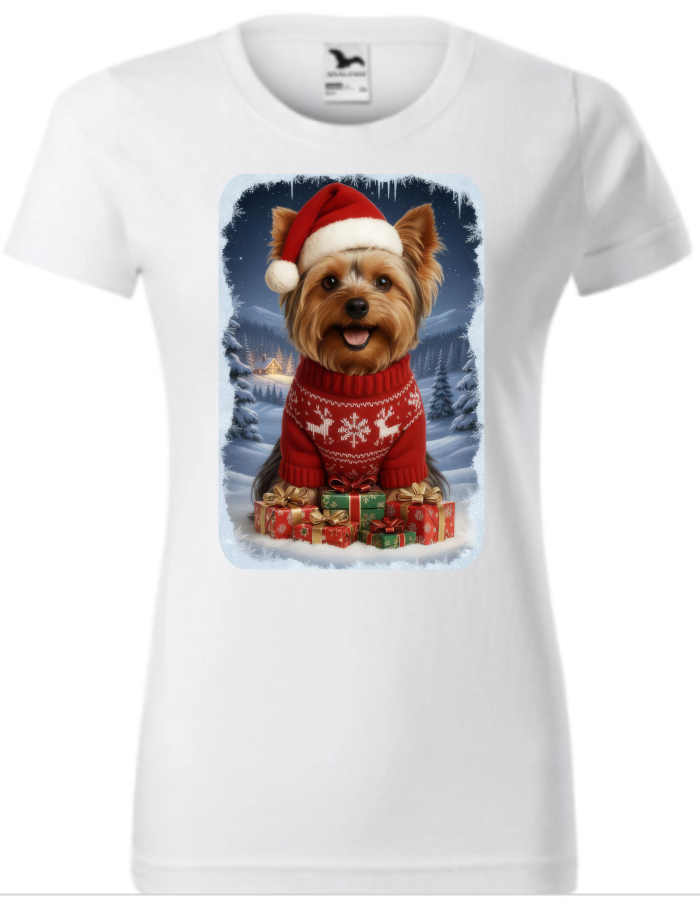 Představujeme vám jedinečné tričko s vánočním motivem Yorkshirského teriéra! Tento energický parťák v roztomilé vánoční čepičce rozněžní každého milovníka tohoto úžasného plemene.