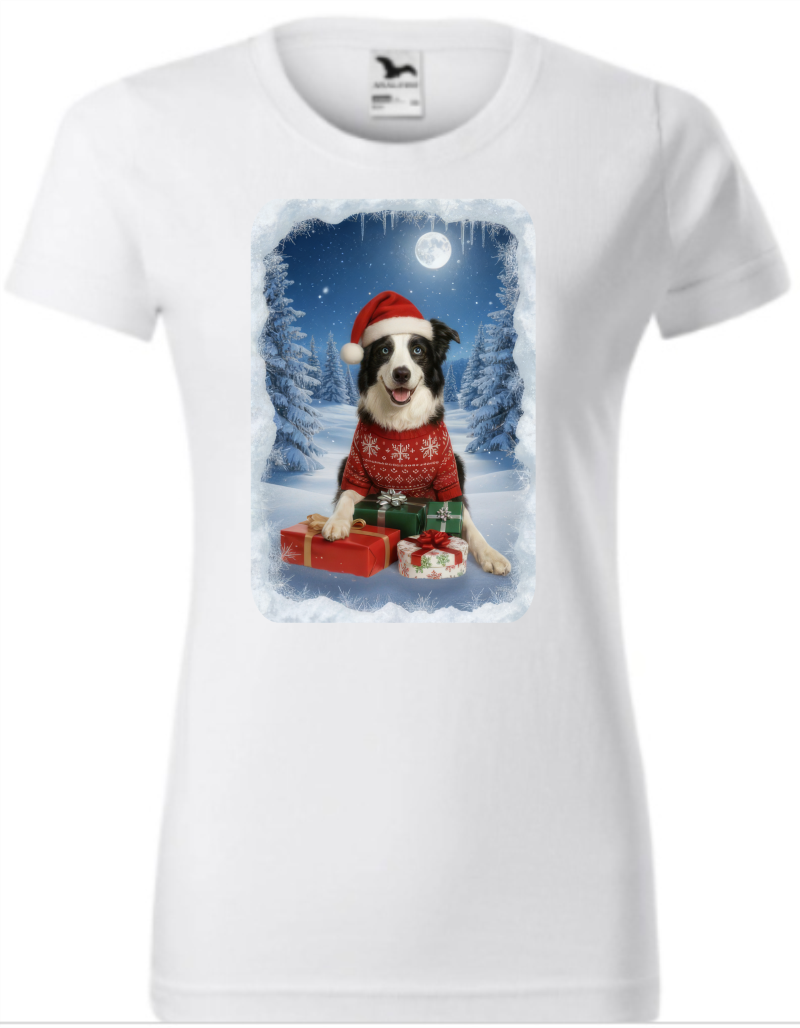 Originální tričko s vánočním motivem border kolie potěší každého milovníka tohoto inteligentního plemene! Roztomilý design zachycující border kolii s vánoční čepičkou přináší tu pravou sváteční atmosféru.
