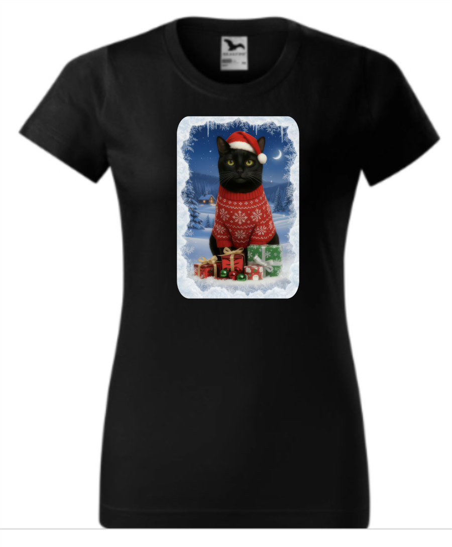 Vánoční tričko s černým kocourem dámské