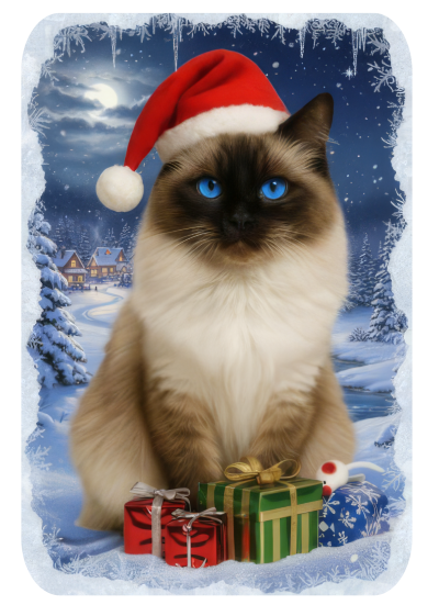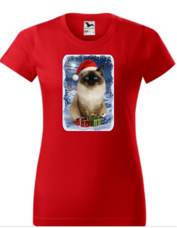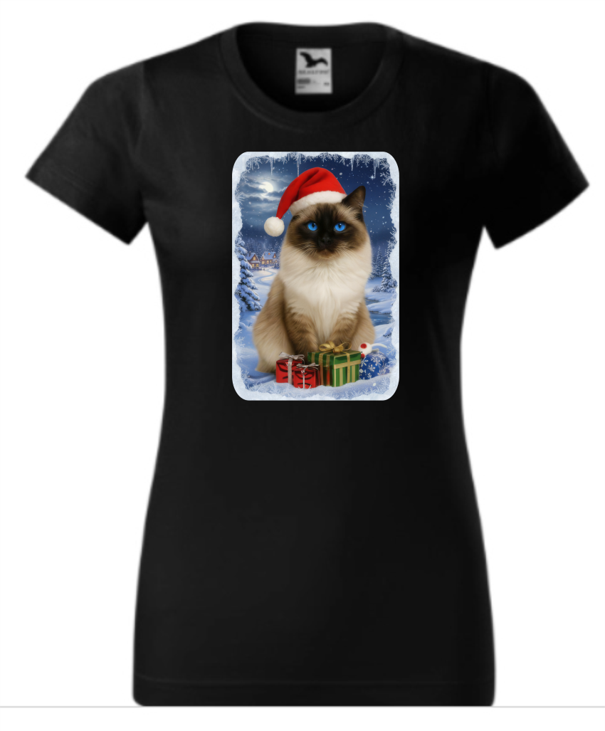 OOriginální tričko s vánočním motivem kočky Ragdoll potěší každého milovníka koček! Roztomilý design zachycující kočičku s vánoční čepičkou přináší tu pravou sváteční atmosféru.