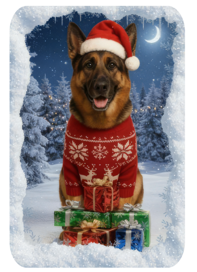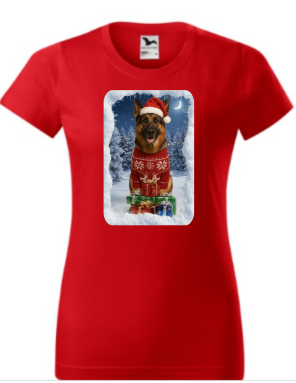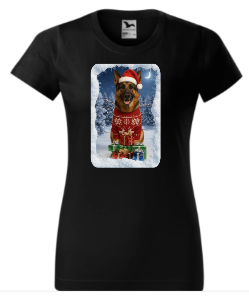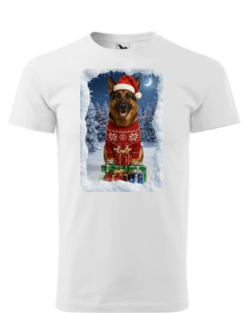 Představujeme vám kouzelné vánoční tričko, které si zamiluje každý milovník Německých ovčáků! Na přední straně trička najdete inteligentního siláka v podobě Německého ovčáka, ozdobeného vánoční čepičkou, který vykouzlí úsměv na tváři všem kolem vás.