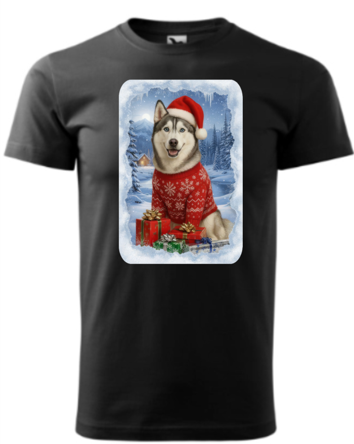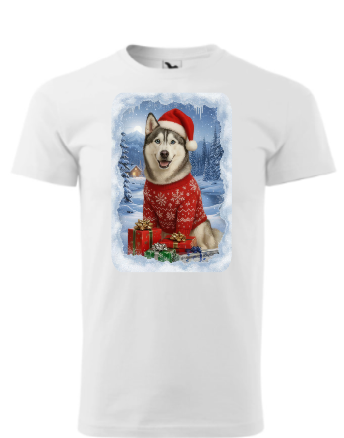 Představujeme vám kouzelné vánoční tričko, které si zamiluje každý milovník Sibiřských husky! Na přední straně trička najdete roztomilého siláka v podobě Sibiřského huskyho, ozdobeného vánoční čepičkou, který vykouzlí úsměv na tváři všem kolem vás.