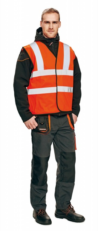Hi-Vis vesta s kontrastními černými paspulemi a reflexními pruhy