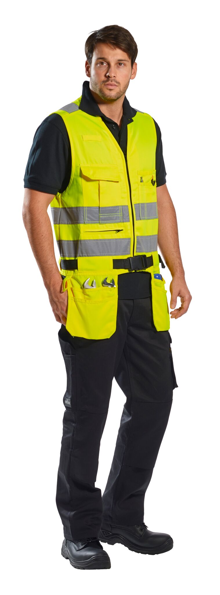 Vesta na nářadí Xenon - spojuje moderní design s vysokou viditelností dle EN ISO 20471. Obsahuje dvojité švy, slídu na jmenovku, opasek pro pohodlné nošení a podporu při ohýbání, víceúčelové kapsy pro bezpečné uložení nářadí. &n