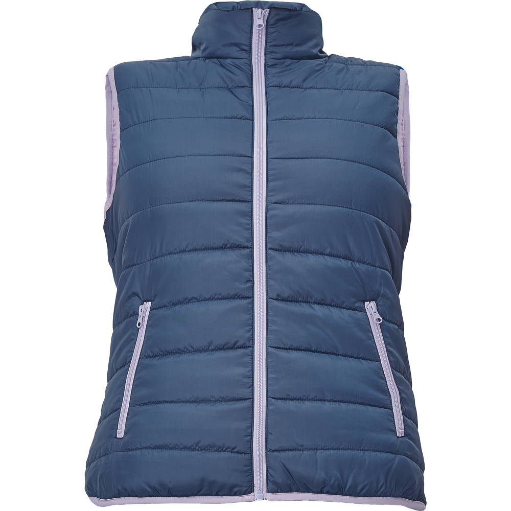 Moderní dámská zateplená vesta; elastický pas; zapínání na zip; 2 boční kapsy na zip.