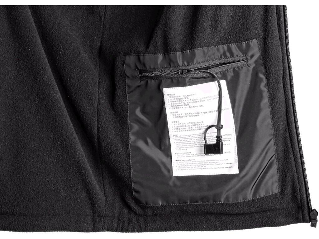 - ovládání je velmi intuitivní a umožňuje zvolit si z 3 různých stupňů vyhřívání dle potřeby, vyhřívání je napájeno powerbankou připojenou USB kabelem, který ústí do vnitřní kapsy, ve které lze powerbanku uložit