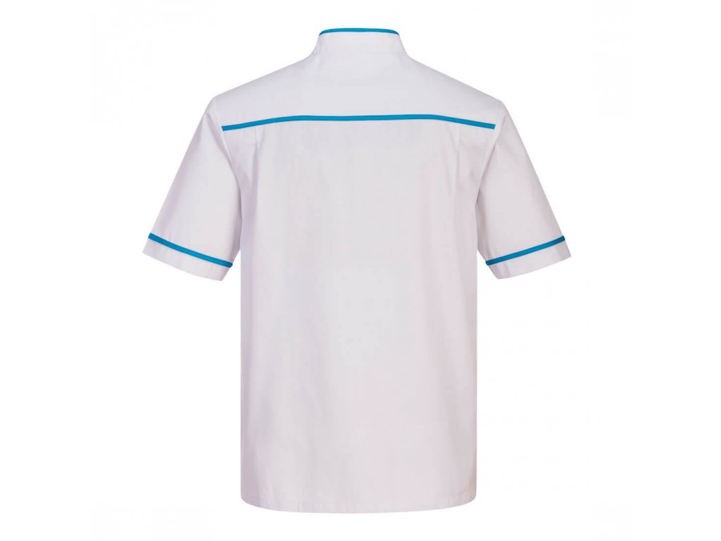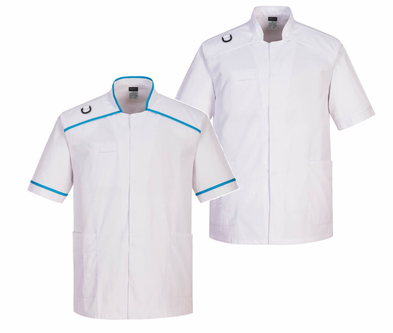 Tato pánská tunika je vyrobena z naší strečové látky Kingsmill. Má svěží design se skrytým zapínáním na knoflíky vpředu, zádovým skladem a prostorem na hrudi pro firemní loga.