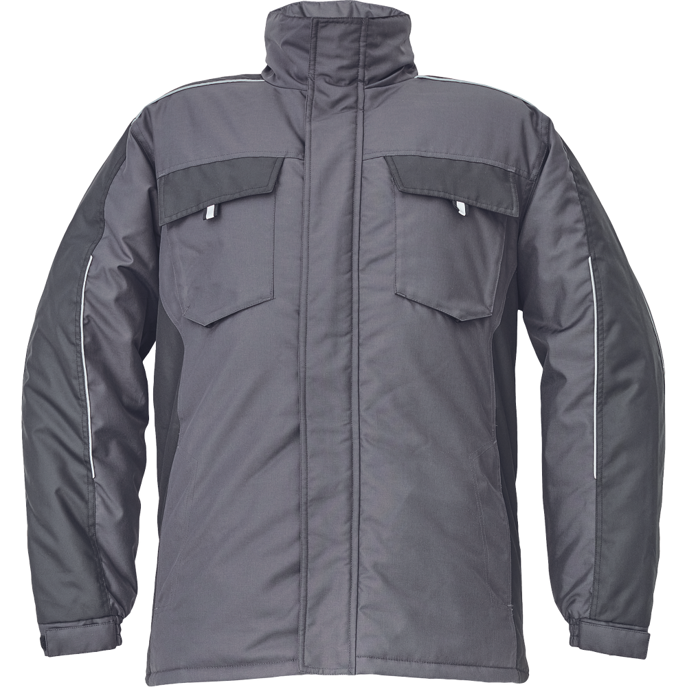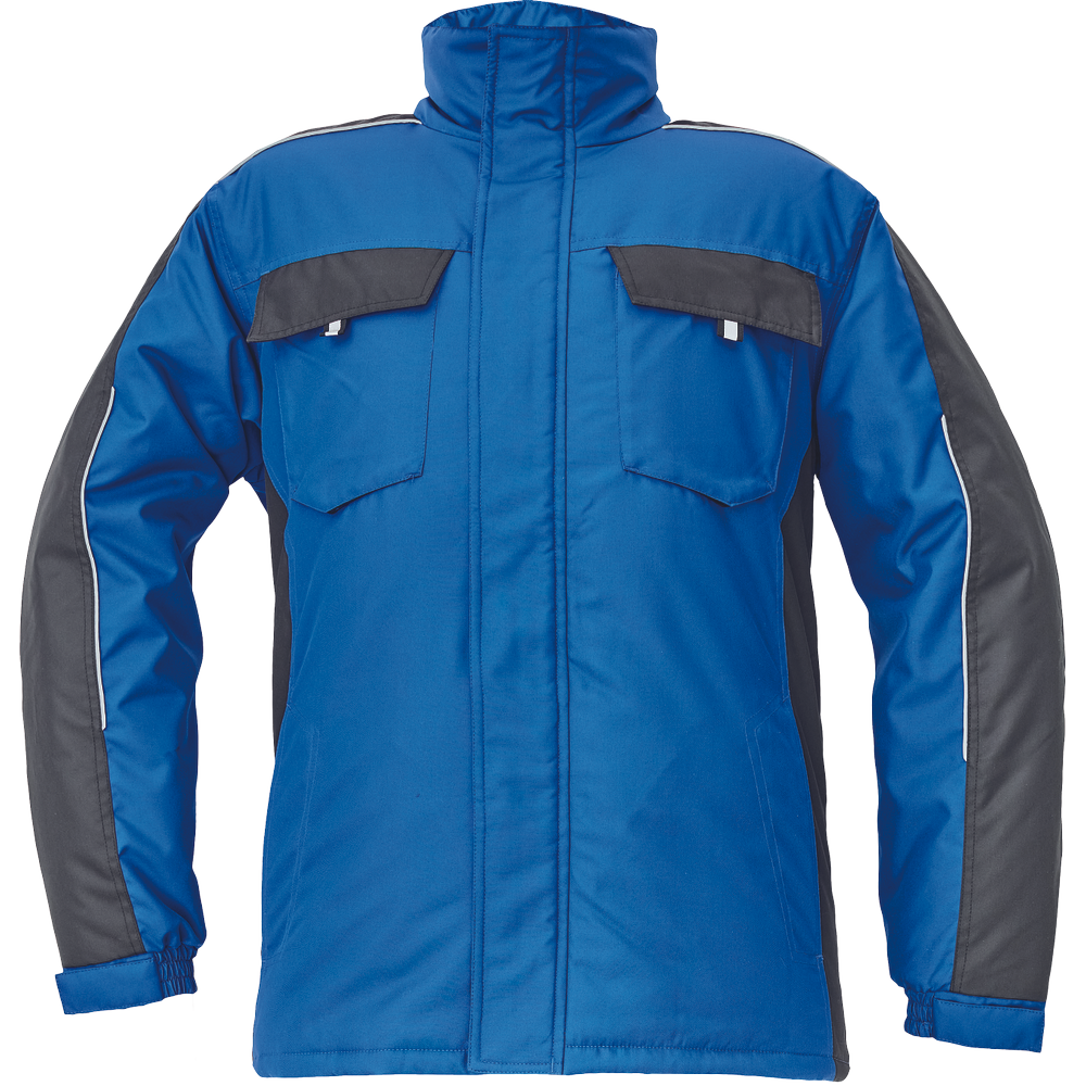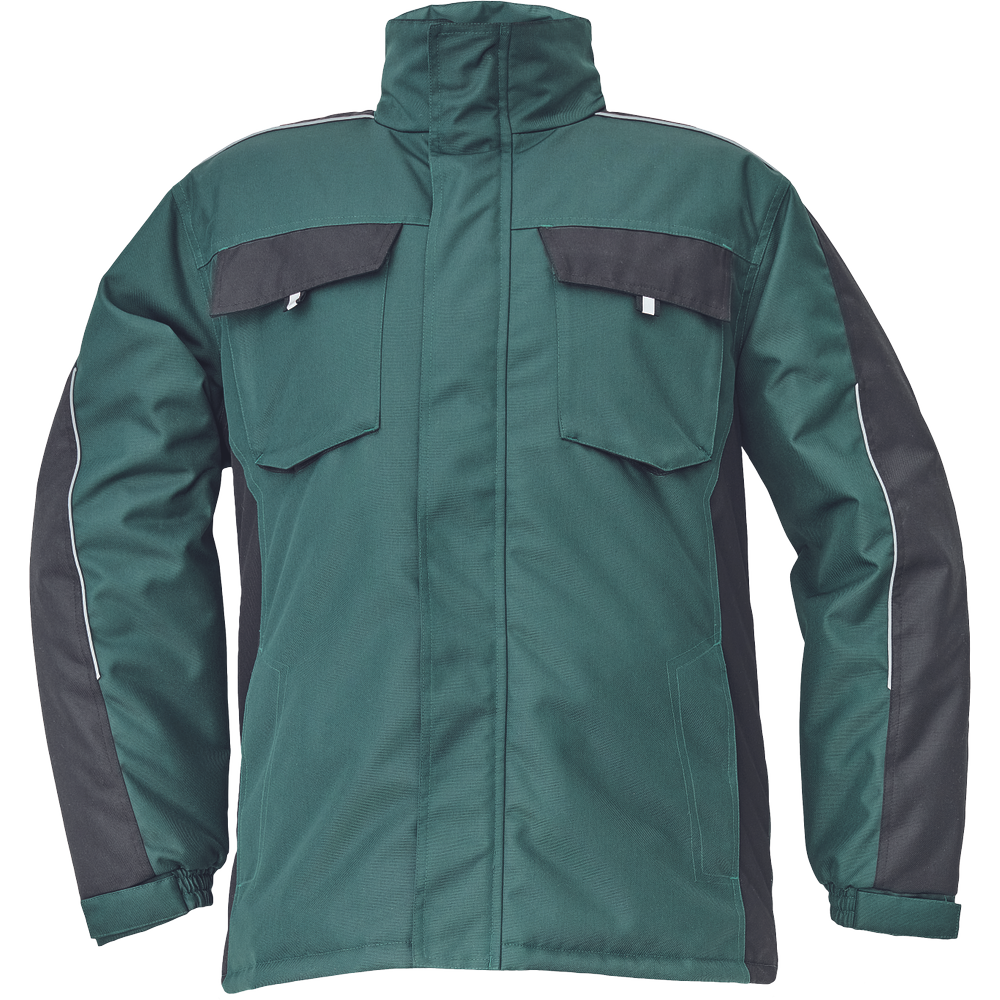 Pánská zimní bunda; zapínání na zip kryté légou na suchý zip; 2 boční kapsy, 2 náprsní kapsy na suchý zip.