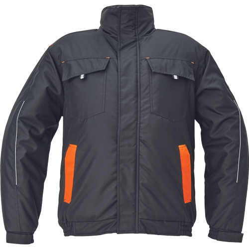 pánská zimní pilot bunda; pružný pas; zapínání na zip kryté légou na suchý zip; 2 boční kapsy, 2 náprsní kapsy na suchý zip.