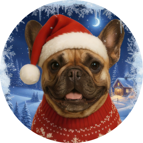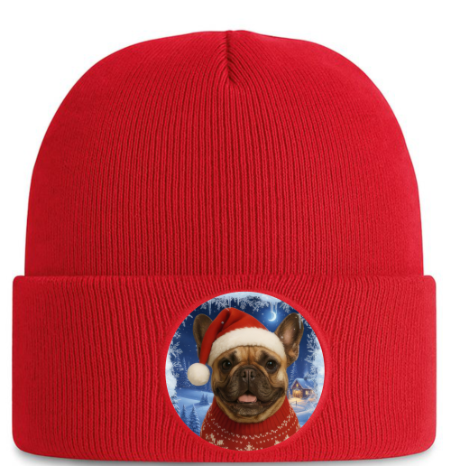 Zahřejte se stylově s naší roztomilou zimní čepicí zdobenou motivem Francouzského buldočka, v santovské čepičce a vánočním svetříku. Tento hravý design potěší každého milovníka buldočků a vánočních motivů.