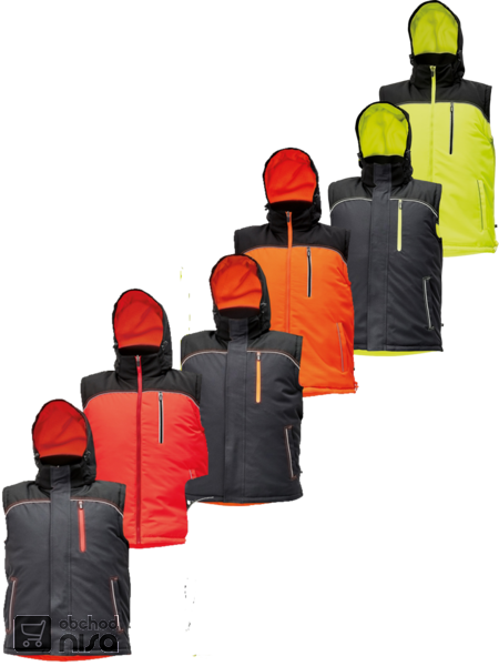 Pánská oboustranná zateplená vesta s odnímaelnou kapucí vhodnou pro obě verze nošení vesty. Oblečení je vhodné pro práci ve většině běžných provozů.